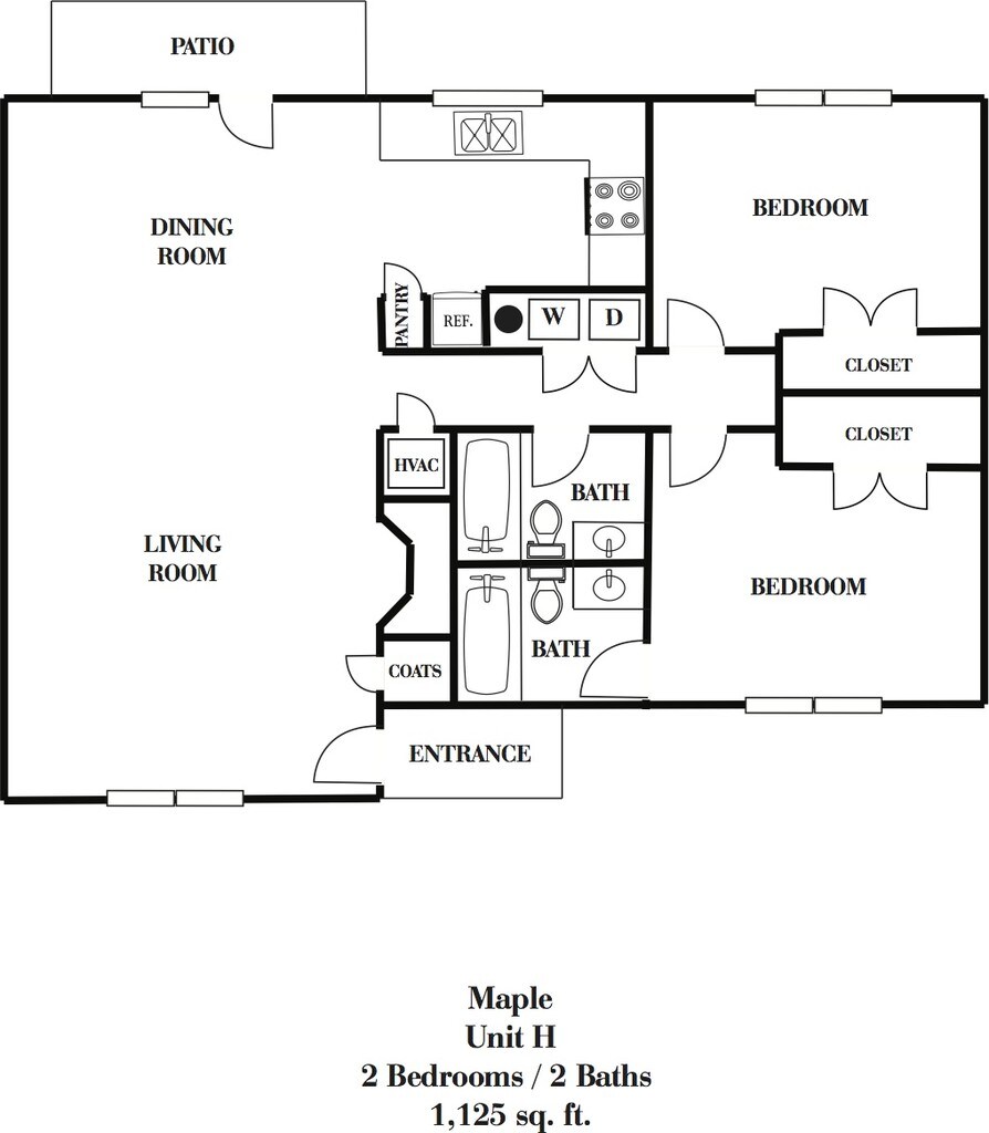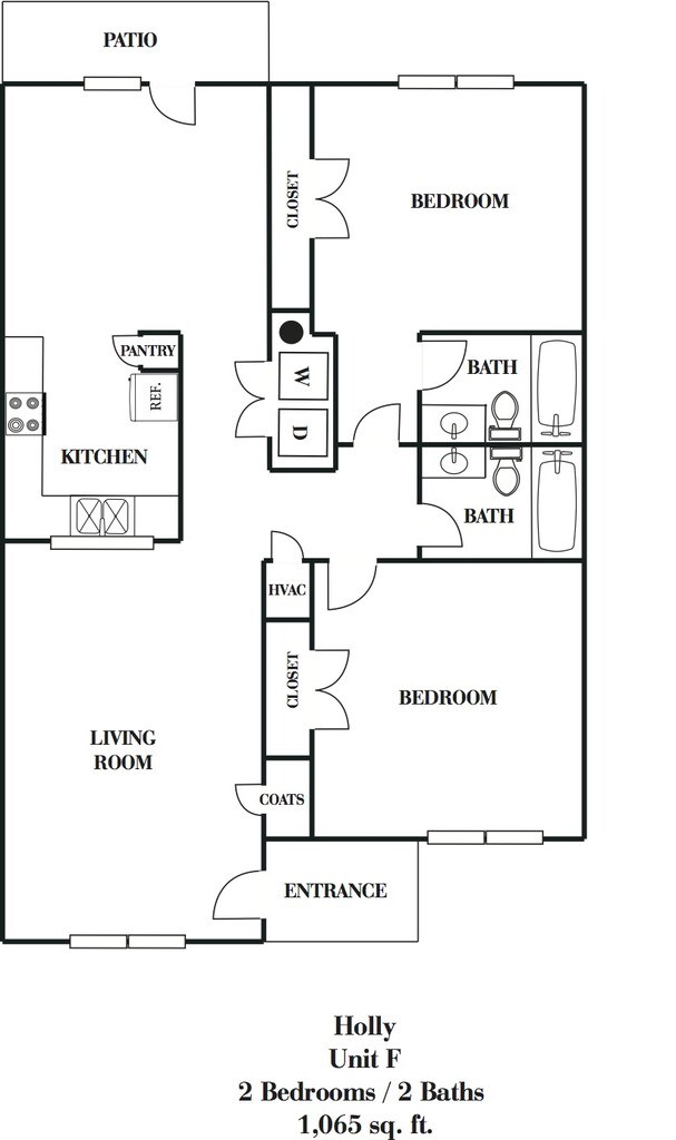 Apartment Model: Holly$1,3202 Bedroom, 2 Bath, 1065 sq ftAvailable NowHolly - Floorplan 1 Maple
