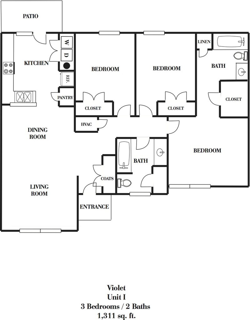 Apartment Model: Violet$1,5203 Bedroom, 2 Bath, 1311 sq ftAvailable NowViolet - Floorplan 1 Fern