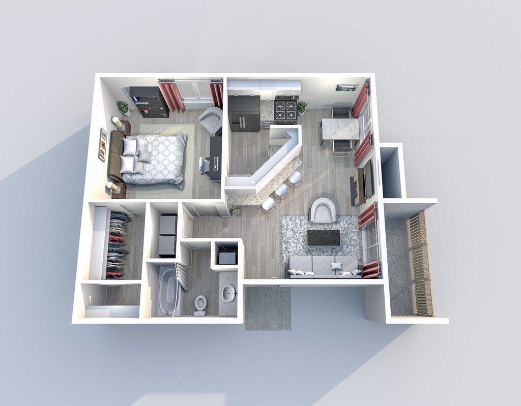 1 Bedroom 1 Bathroom - Floorplan 2 Apartment Unit: 618AApartment Model: 1 Bedroom 1 Bathroom1 Bedroom, 1 Bath, 776 sq ftAvailable Now1 Bedroom 1 Bathroom