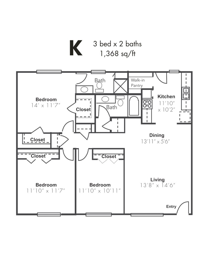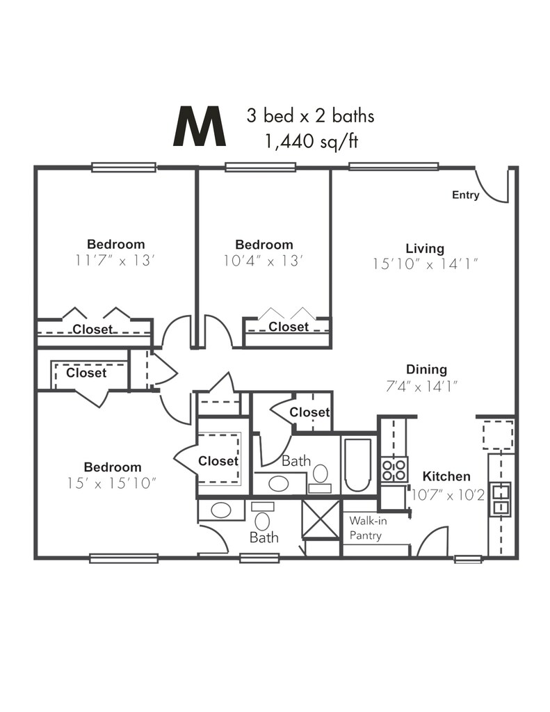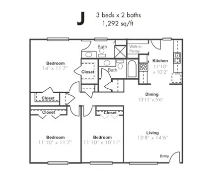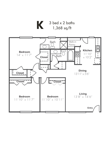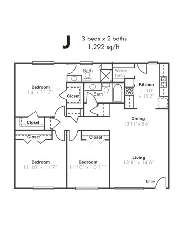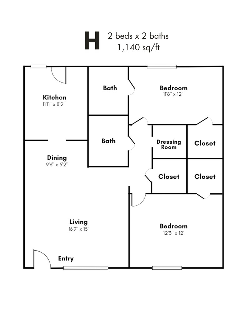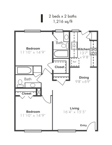 1x1BD - Floorplan 1 2 Bedrooms