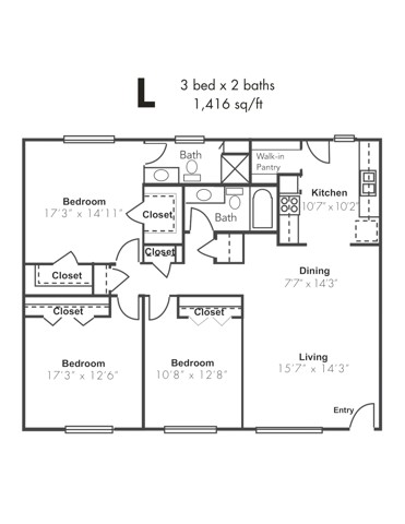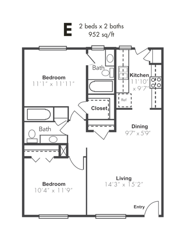 Apartment Model: 2x2AU2 Bedroom, 2 Bath, 952 sq ftAvailable Now![]()