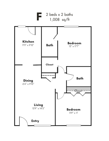 Apartment Model: 2x2CU2 Bedroom, 2 Bath, 1008 sq ftAvailable Now![]()