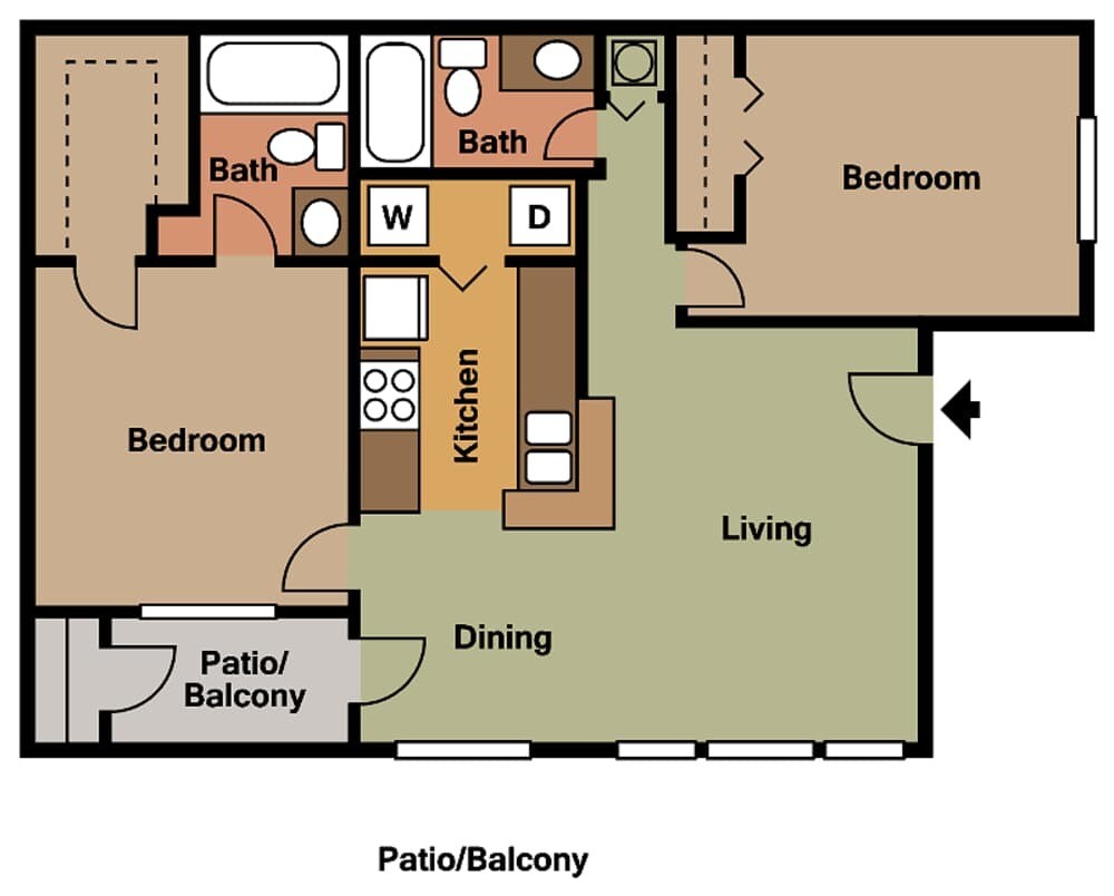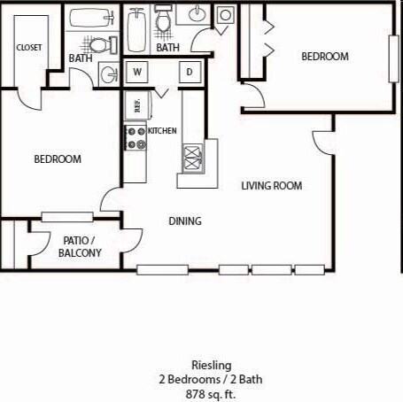 Apartment Model: 2 bedroomFrom $1,4502 Bedroom, 2 Bath, 878 sq ftAvailable NowFloorplansPhotos![]()