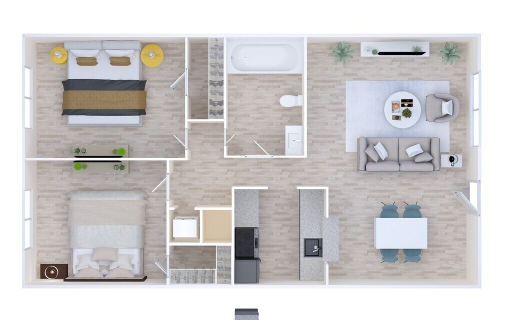 2 Beds, 1 Bath, 850 sq ftModel Gallery