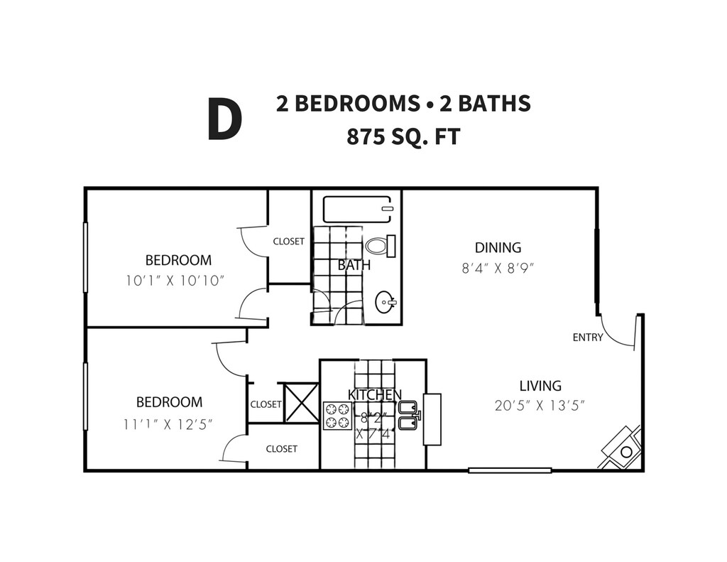 2 Beds, 1 Bath, 875 sq ftModel Gallery
