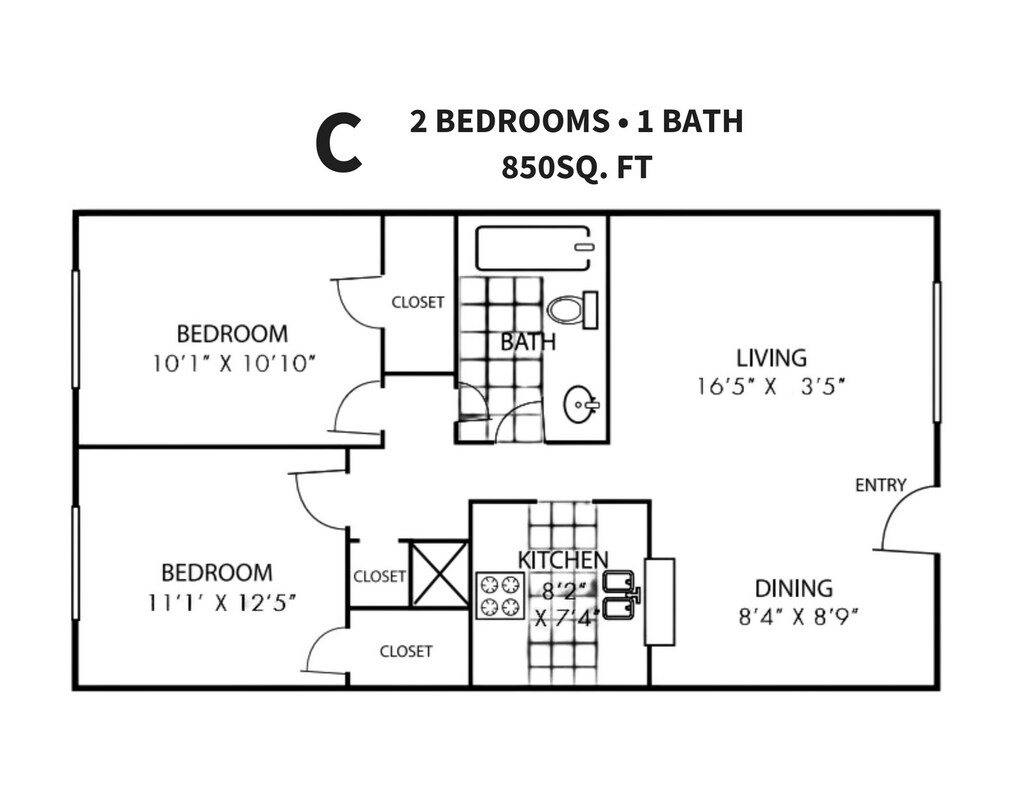 2X2-A - Floorplan 2 2 Bed 1 Bath