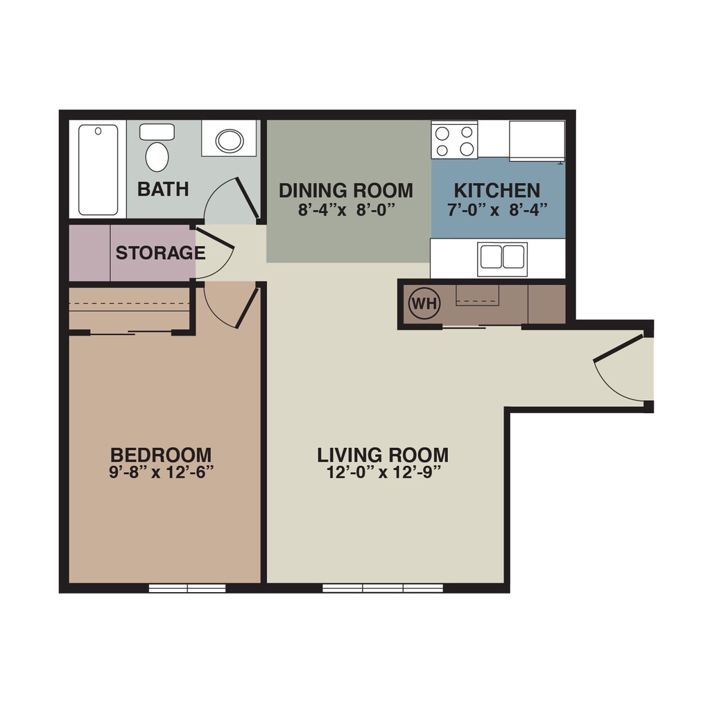 1 Bedroom - Floorplan 1 Apartment Unit: 17Apartment Model: 1 Bedroom1 Bedroom, 1 Bath, 612 sq ftAvailable December 1, 20252 Bedrooms