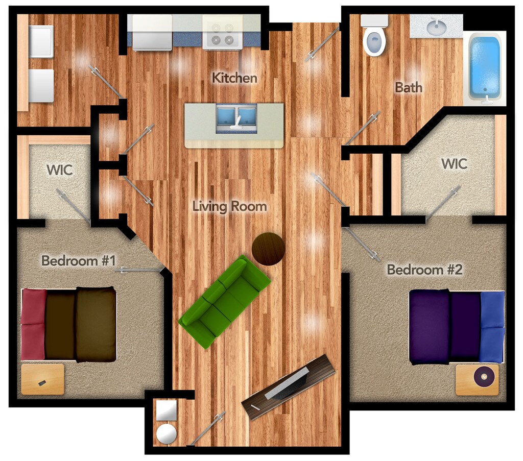 2 Beds, 1 Bath, 917 sq ftModel Gallery