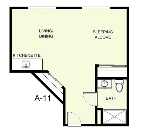 Apartment Model: A-13Studio, 1 Bath, 360 sq ftUnavailable![]()