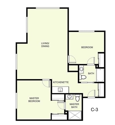 Apartment Model: A-3Studio, 1 Bath, 443 sq ftUnavailable![]()