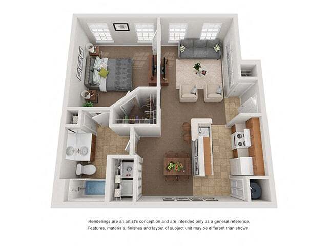 Apartment Model: Plan AFrom $1,2851 Bedroom, 1 Bath, 689 sq ftAvailable Now![]()