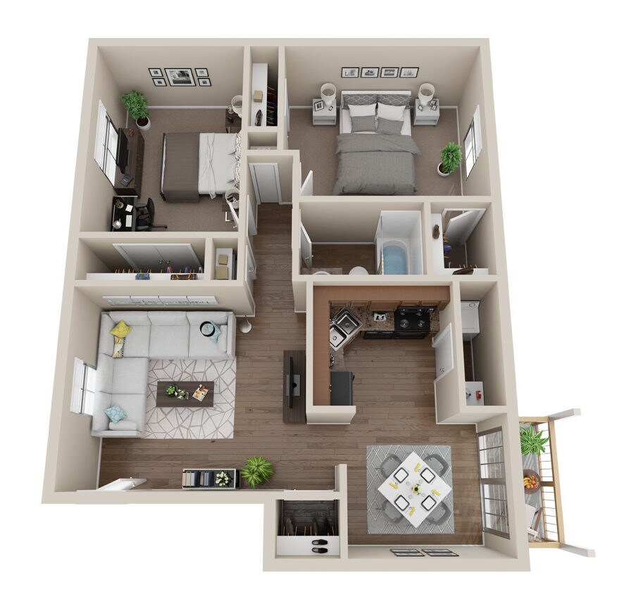 2 Beds, 1 Bath, 880 sq ftAvailable NowModel Gallery