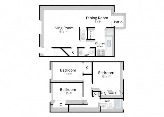 Apartment Model: 3 Bedroom TownhomeFrom $1,6023 Bedroom, 1.5 Bath, 1119 sq ftAvailable Now![]() - 3 Bedroom Townhome - Floorplan 1 ![]() - 3 Bedroom Townhome - Floorplan 2 Apartment Unit: 00105Apartment Model: 3 Bedroom Townhome$1,6023 Bedroom, 1.5 Bath, 1119 sq ftAvailable NowApartment Unit: 00406Apartment Model: 3 Bedroom Townhome$1,6163 Bedroom, 1.5 Bath, 1119 sq ftAvailable NowApartment Unit: 01807Apartment Model: 3 Bedroom Townhome$1,6023 Bedroom, 1.5 Bath, 1119 sq ftAvailable Now