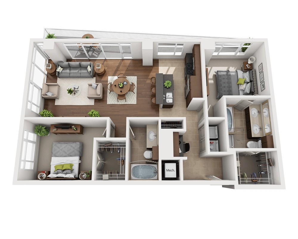 1 Bed, 2 Baths, 1301 sq ftAvailable NowModel Gallery
