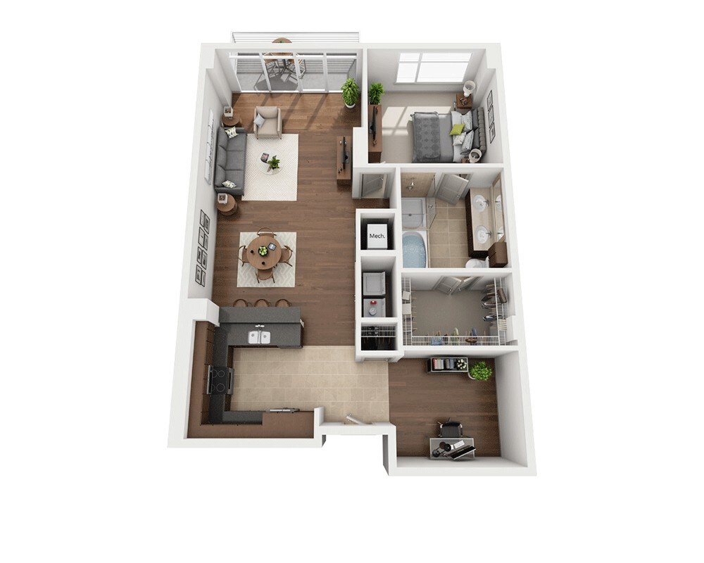 1 Bed, 1 Bath, 631 sq ftModel Gallery