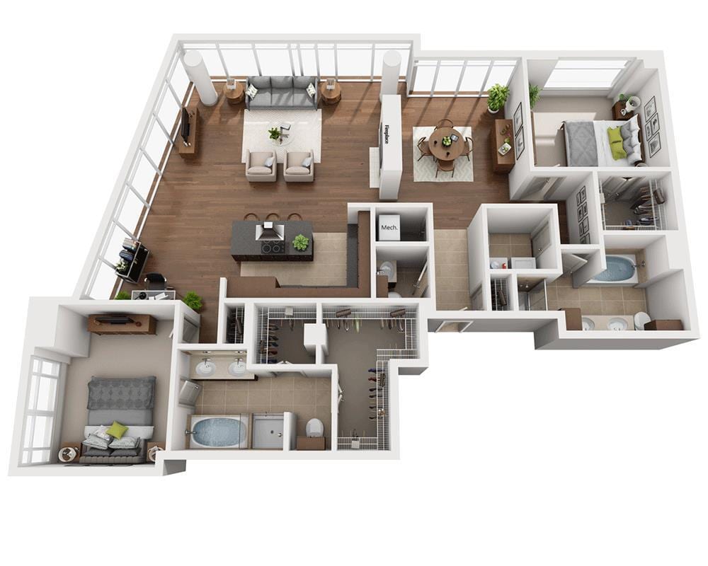 Plan H (A1CD) - Floorplan 1 Apartment Unit: 410Apartment Model: Plan H (A1CD)$3,6951 Bedroom, 1 Bath, 1138 sq ftAvailable March 20, 2026FloorplansPhotos![]()
