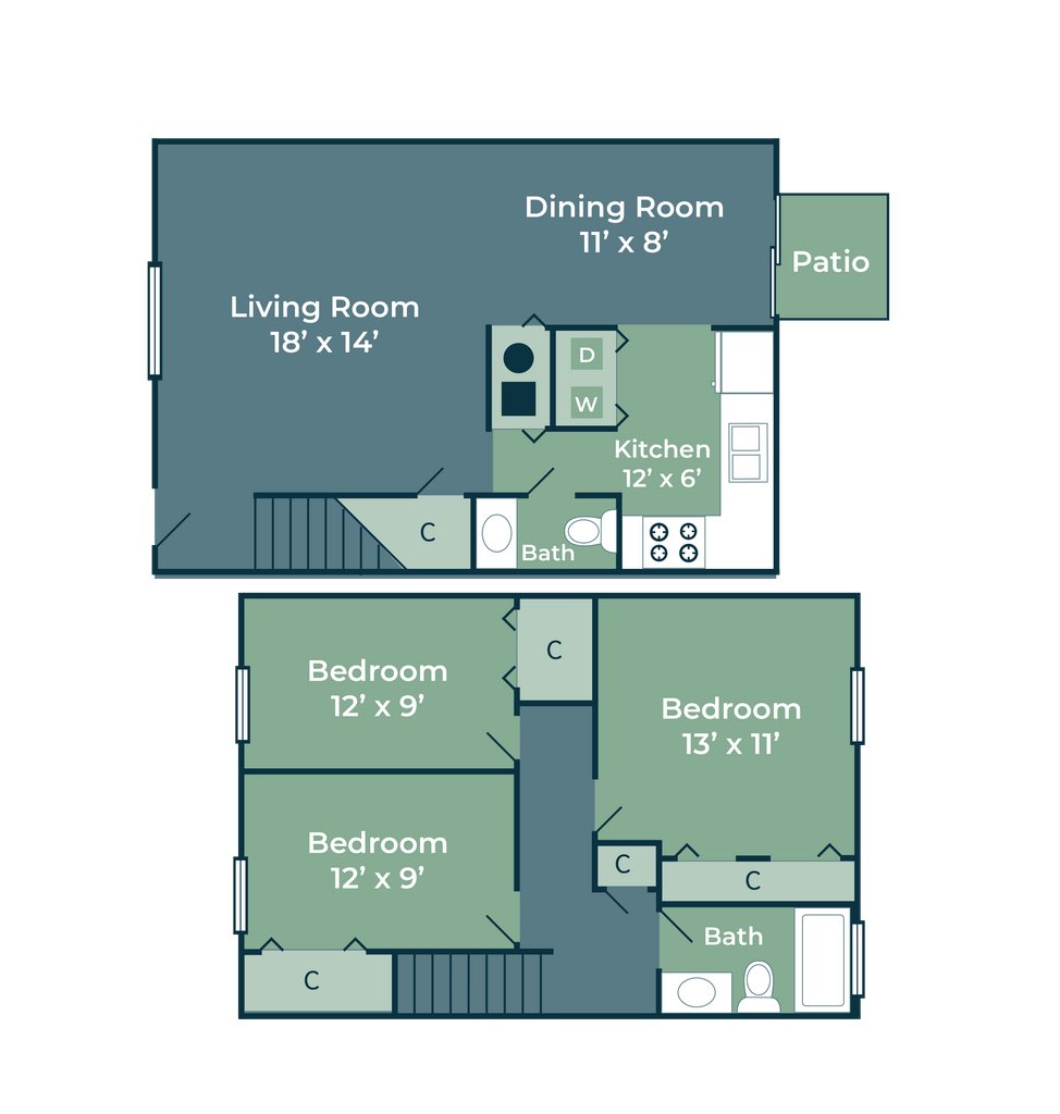 Apartment Model: Three Bedroom TownhomeFrom $1,8453 Bedroom, 1.5 Bath, 1112 sq ftUnavailable![]()