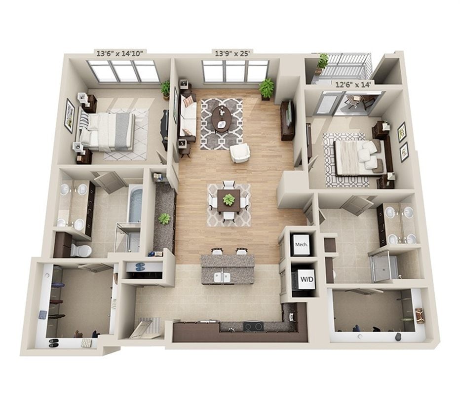 2 Beds, 2 Baths, 1495 sq ftModel Gallery