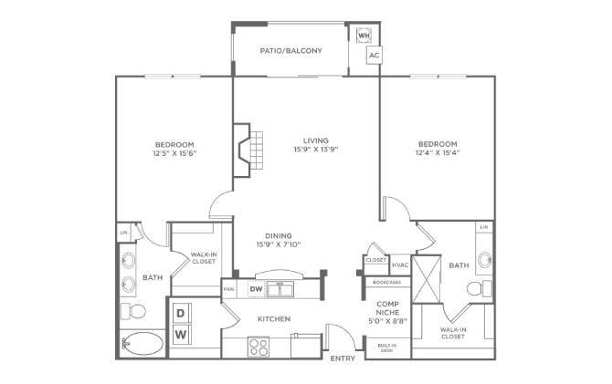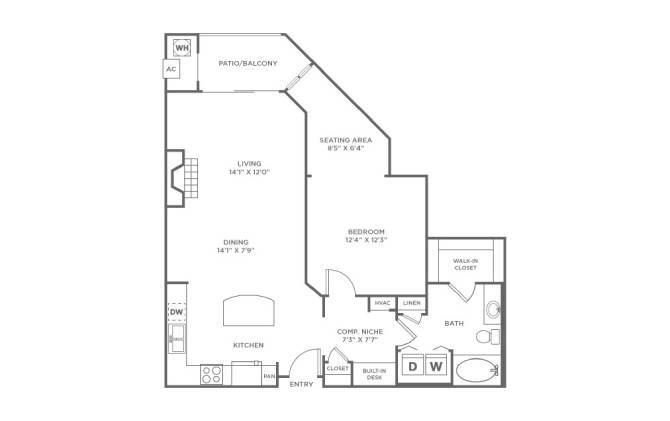 Apartment Model: 1 Bed/1 Bath-A2From $1,7231 Bedroom, 1 Bath, 709 sq ftAvailable Now![]()