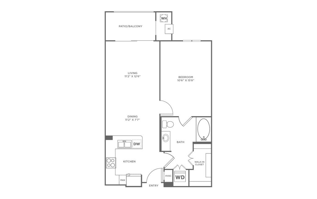 Apartment Model: 1 Bed/1 Bath-A2From $1,9151 Bedroom, 1 Bath, 709 sq ftAvailable NowFloor plans are artist's rendering. All dimensions are approximate. Actual product and specifications may vary in dimension or detail. Not all features are available in every rental home. Please see a representative for details.