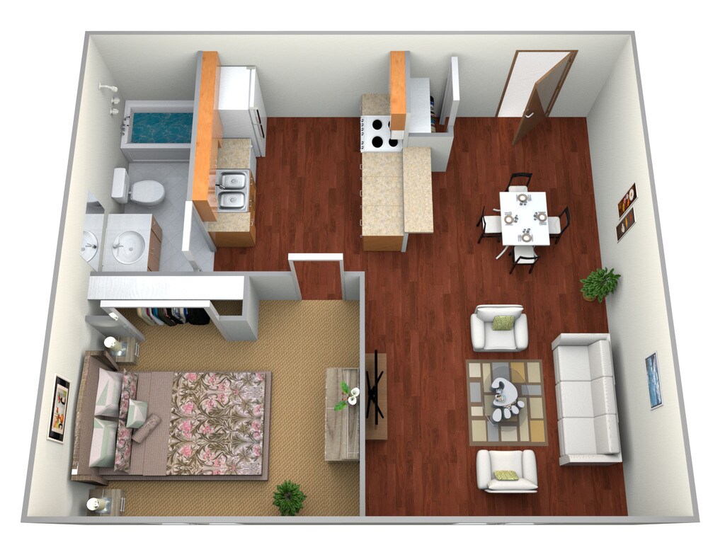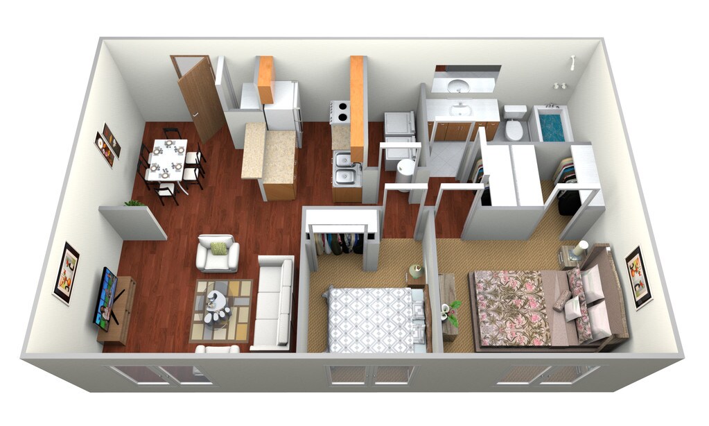 2 Beds, 1 Bath, 850-900 sq ftAvailable Nov 1Model Gallery