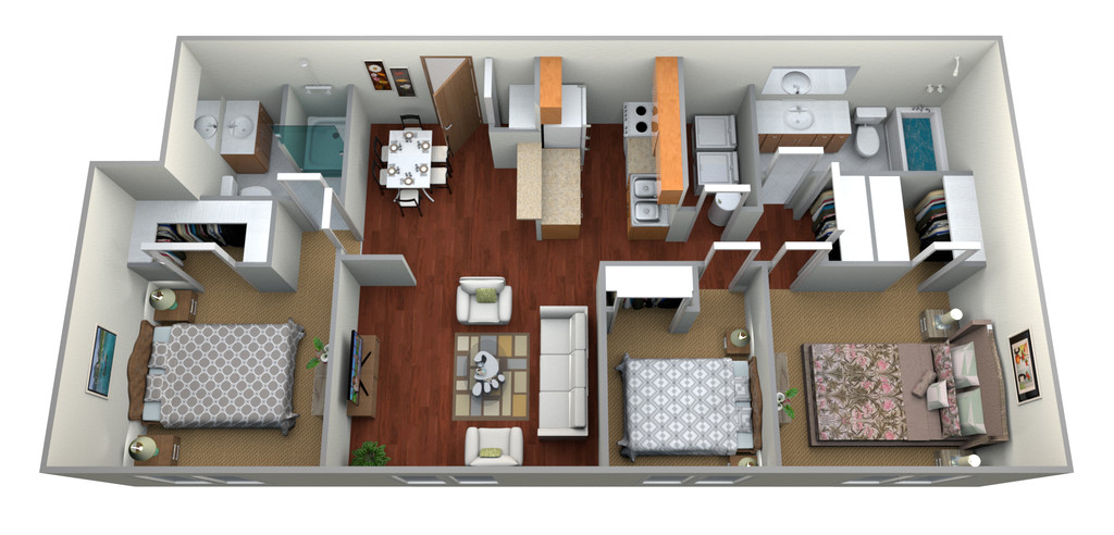 3 Beds, 2 Baths, 1100 sq ftModel Gallery