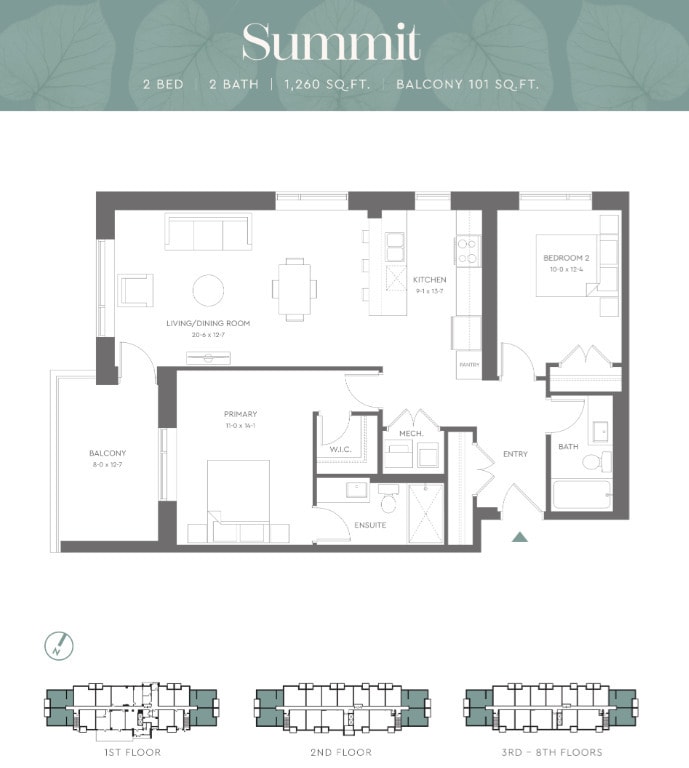 Apartment Model: SummitFrom $2,6502 Bedroom, 2 Bath, 1260 sq ftAvailable NowFloorplansPhotos![]()