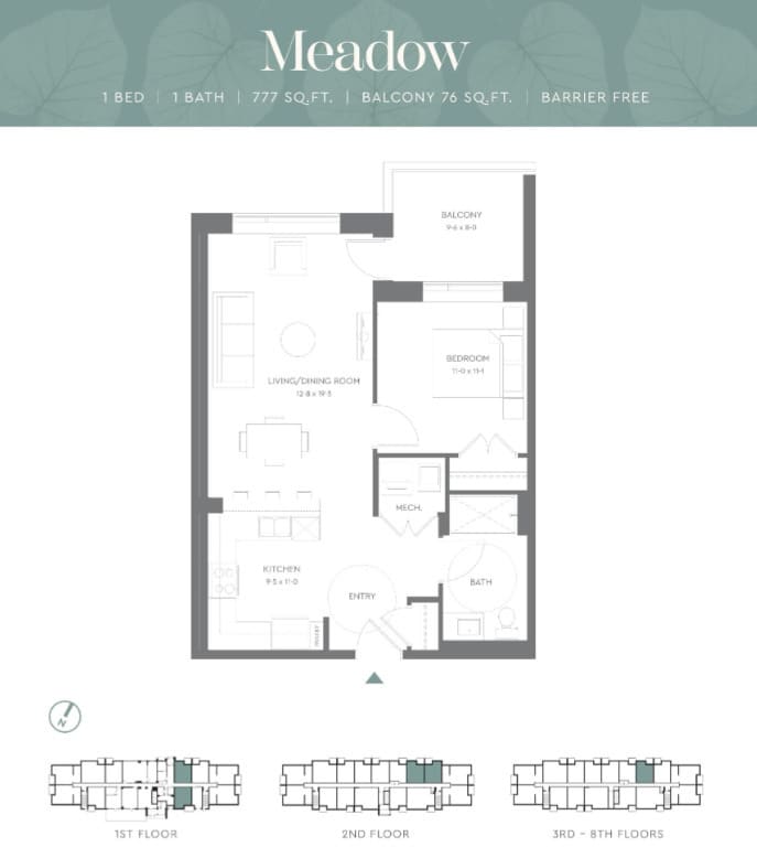Meadow - Floorplan Apartment Unit: 106Apartment Model: Meadow$2,1501 Bedroom, 1 Bath, 777 sq ftAvailable NowApartment Unit: 411Apartment Model: Meadow$2,1501 Bedroom, 1 Bath, 777 sq ftAvailable NowMonarch