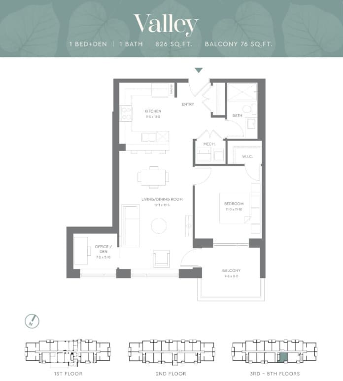 Valley - Floorplan Apartment Unit: 316Apartment Model: Valley$2,2501 Bedroom, 1 Bath, 826 sq ftAvailable Now2 Bedrooms
