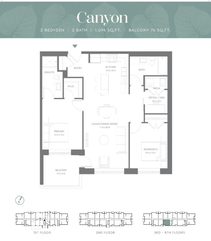 Canyon - Floorplan Apartment Unit: 801Apartment Model: Canyon$2,8002 Bedroom, 2 Bath, 1094 sq ftAvailable NowCooper