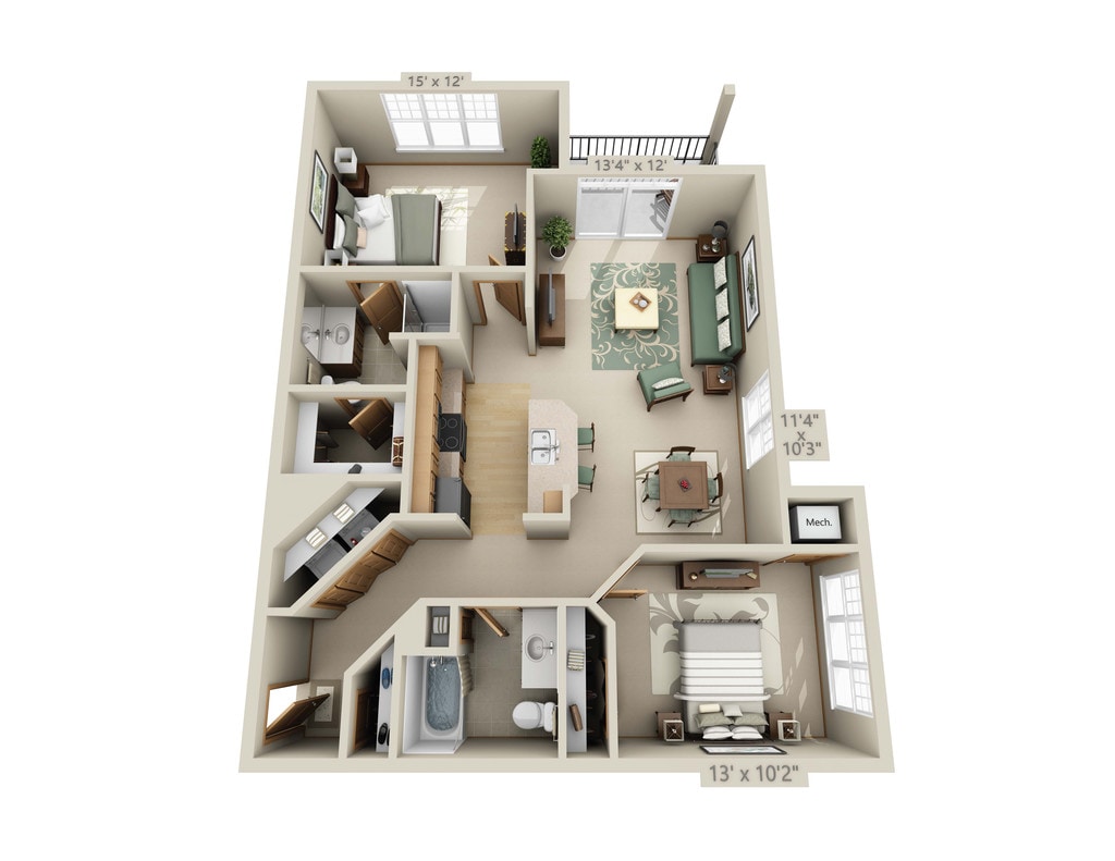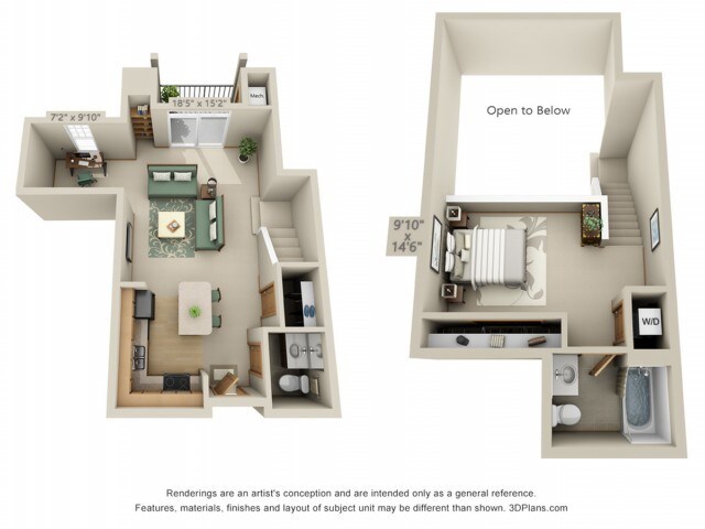 1 Bed, 1.5 Baths, 855 sq ftAvailable NowModel Gallery