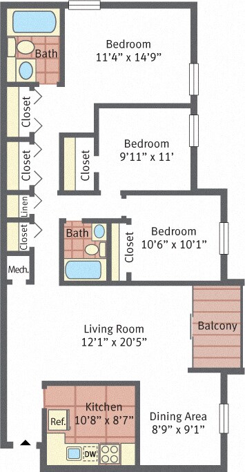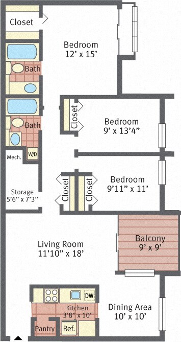 Apartment Model: Three Bedroom + BalconyCall For Rates3 Bedroom, 2 Bath, 1145 sq ftUnavailable![]()