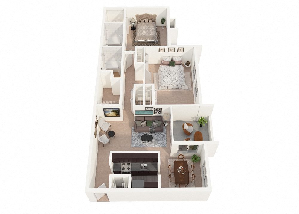2 Beds, 2 Baths, 1235 sq ftLargest 2 BedroomThis is the largest 2 Bedroom at this PropertyModel Gallery