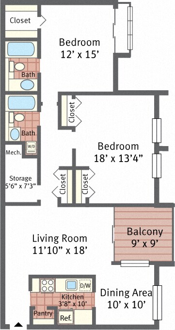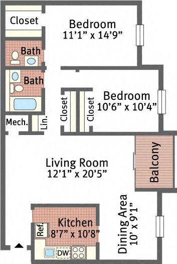 Apartment Model: Two Bedroom DeluxeCall For Rates2 Bedroom, 2 Bath, 1235 sq ftUnavailable![]()