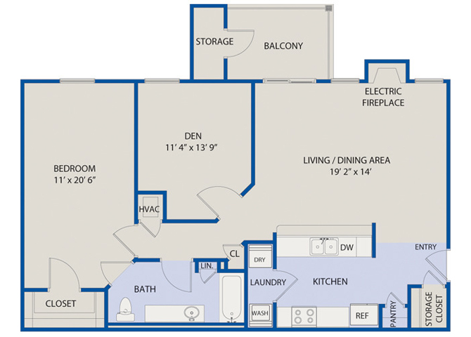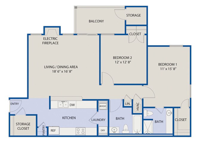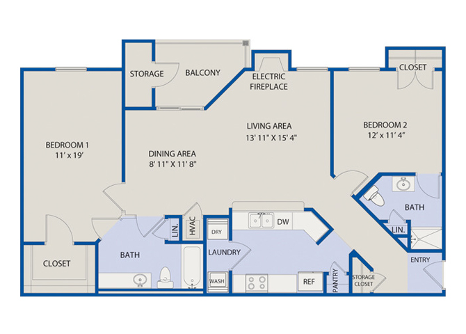 Large 1 Bedroom- Phase II - Floorplan 1 2 Bedrooms