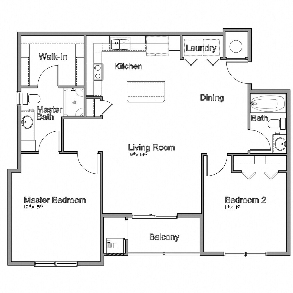 2 Beds, 2 Baths, 1143 sq ftAvailable NowLargest 2 BedroomThis is the largest 2 Bedroom at this PropertyModel Gallery