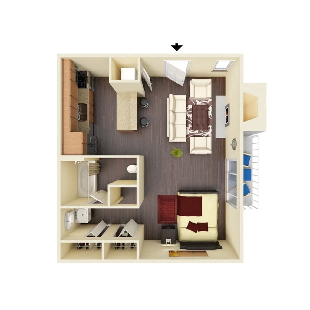 Studio, 1 Bath, 580 sq ftAvailable NowModel Gallery