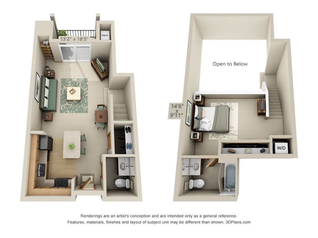 1 Bed, 1.5 Baths, 863 sq ftAvailable NowModel Gallery