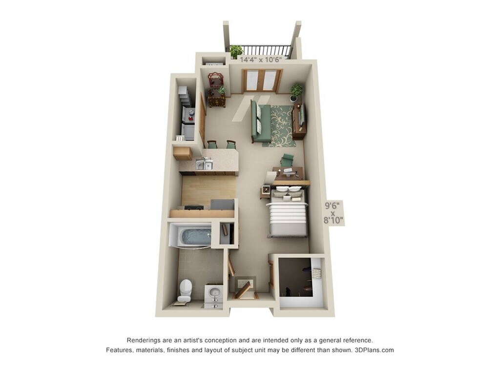 Studio, 1 Bath, 499 sq ftModel Gallery