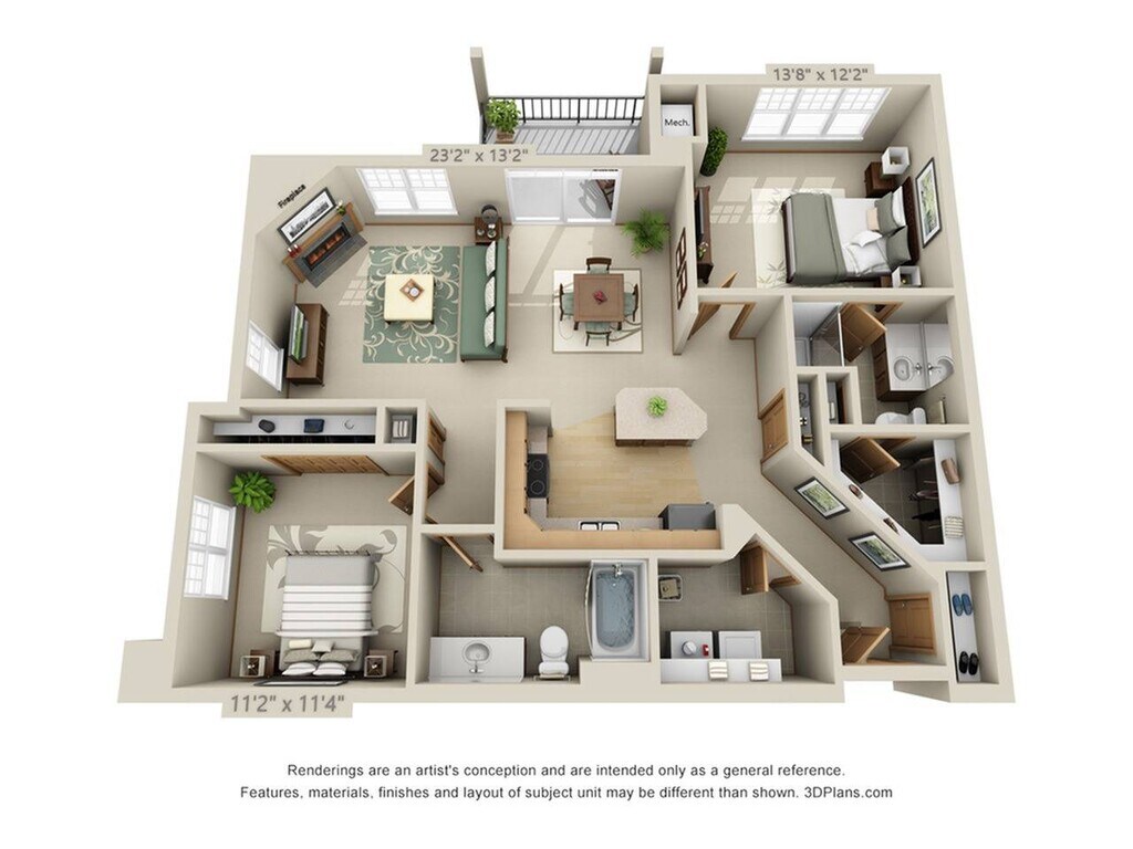 2 Beds, 2 Baths, 1106-1108 sq ftAvailable NowCheapest 2 BedroomThis is the cheapest 2 Bedroom at this PropertyModel Gallery