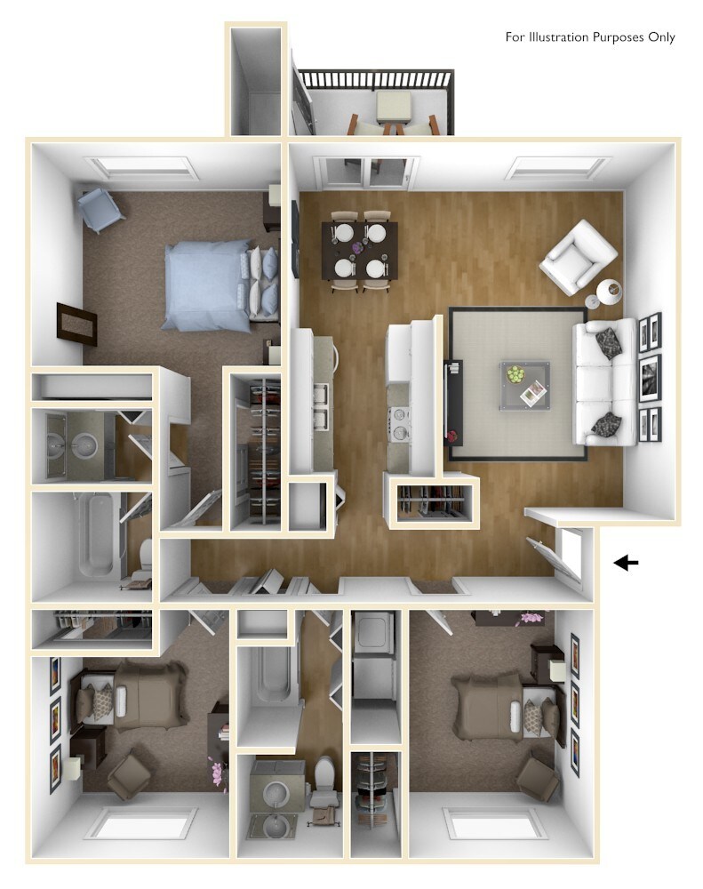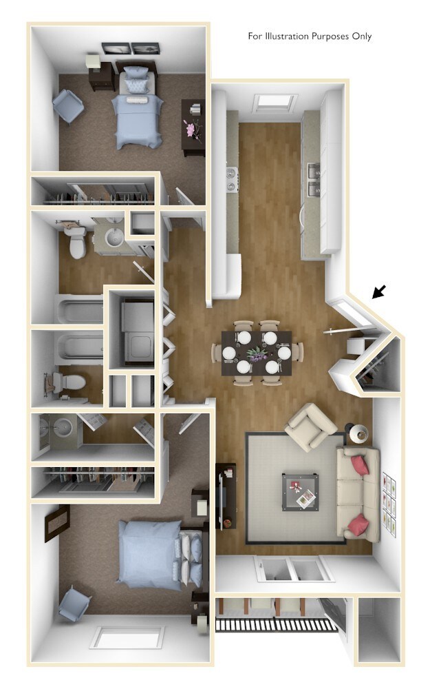 2 Beds, 2 Baths, 1200 sq ftAvailable NowLargest 2 BedroomThis is the largest 2 Bedroom at this PropertyModel Gallery
