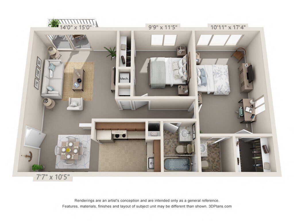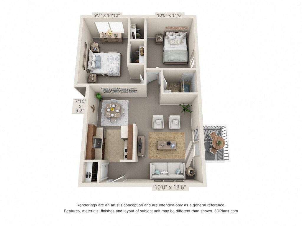 Apartment Model: 1 Bedroom, 1 Bath 560 (Patio)1 Bedroom, 1 Bath, 560 sq ftAvailable NowFloorplansPhotos![]()