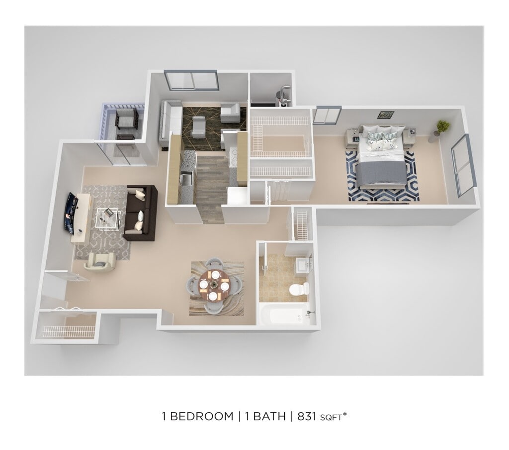 1 Bed, 1 Bath, 774-831 sq ftAvailable NowModel Gallery