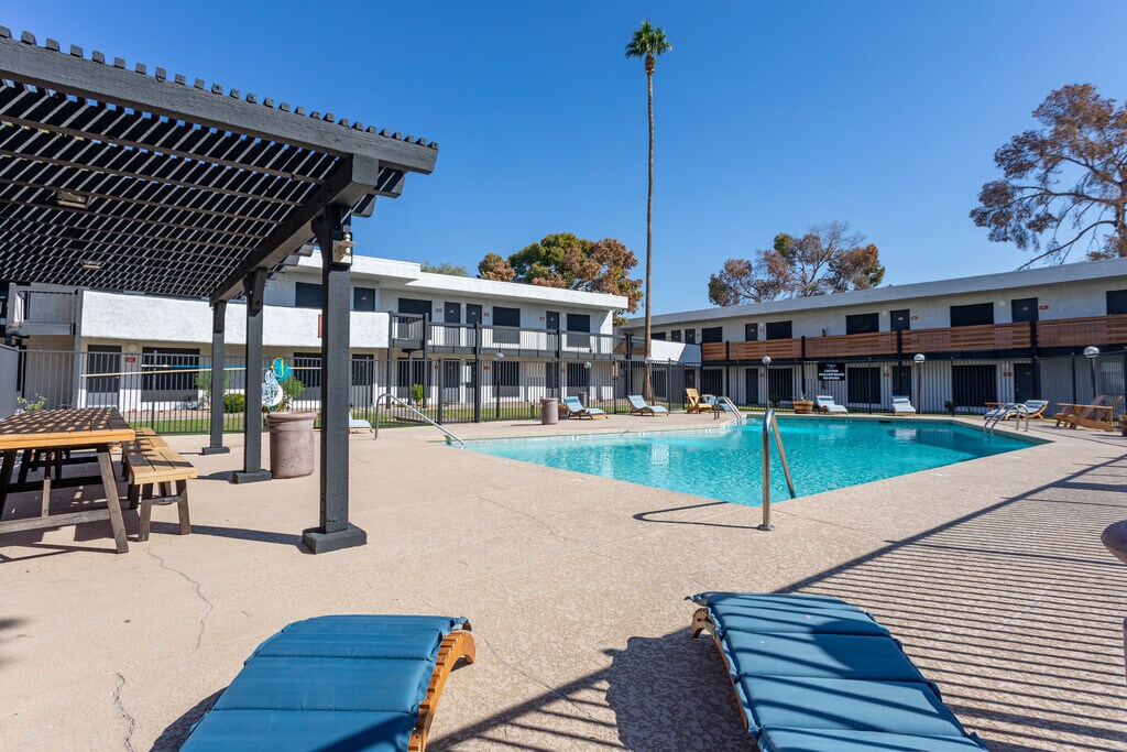 Aspire Apartment Homes offers modern living at its finest. Our Studio, 1, 2 and bedroom apartments are situated perfectly in the Phoenix area near Spectrum Mall. Our pet-friendly community gives you plenty of opportunities to unwind and enjoy the Phoenix heat, whether it's floating in our sparkling swimming pool, or meeting other residents near the community fitness center. Come home to a modern kitchen , updated cabinetry, large closet, and your own personal washer and dryer in selected floorplans. For those that enjoy the finer things, upgrade to one of our fully renovated apartments with quartz counters, stainless steel appliances and LED light fixtures. Experience the true convenience of modern living at Aspire Apartments in Phoenix, AZ.