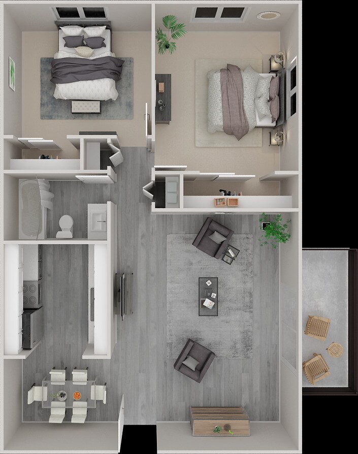 2 Beds, 1 Bath, 760 sq ftAvailable NowModel Gallery