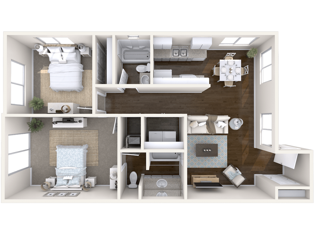 2 Beds, 2 Baths, 840 sq ftModel Gallery