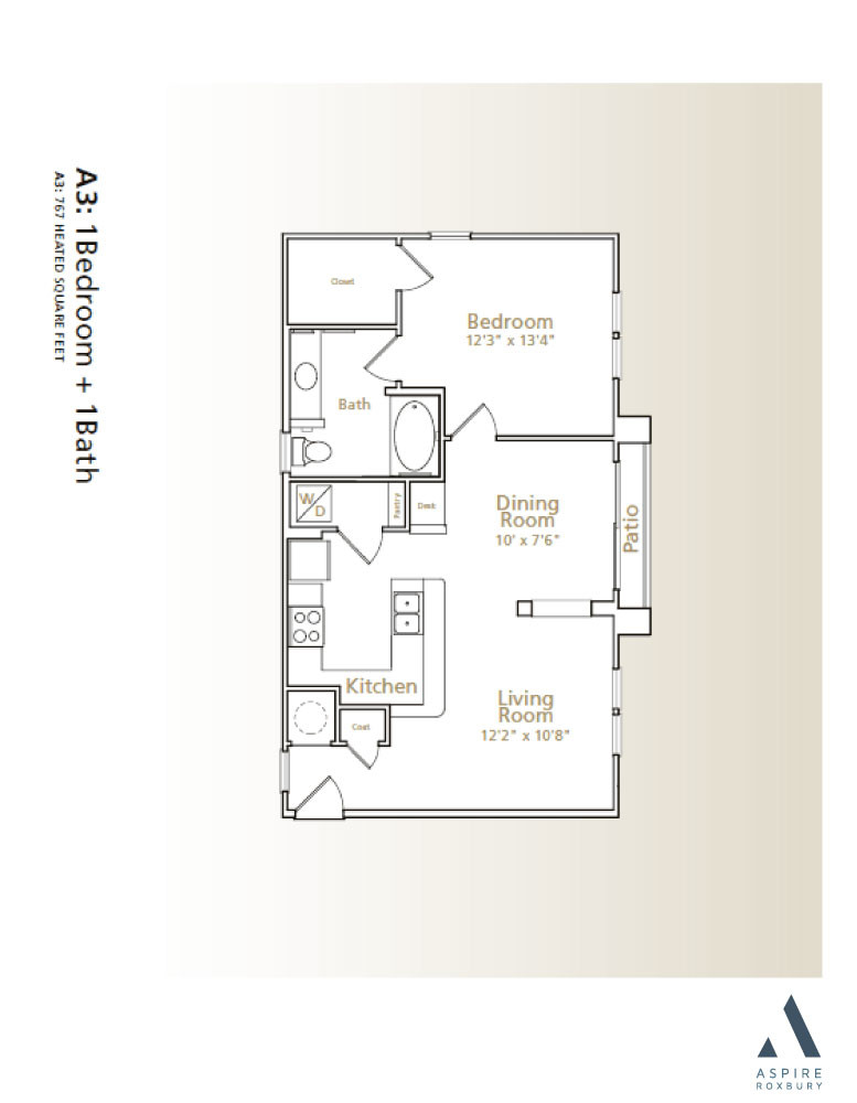 Apartment Model: A31 Bedroom, 1 Bath, 767 sq ftUnavailable![]()