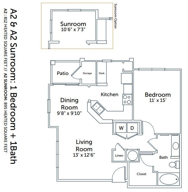 Apartment Model: A211 Bedroom, 1 Bath, 895 sq ftAvailable Now![]()