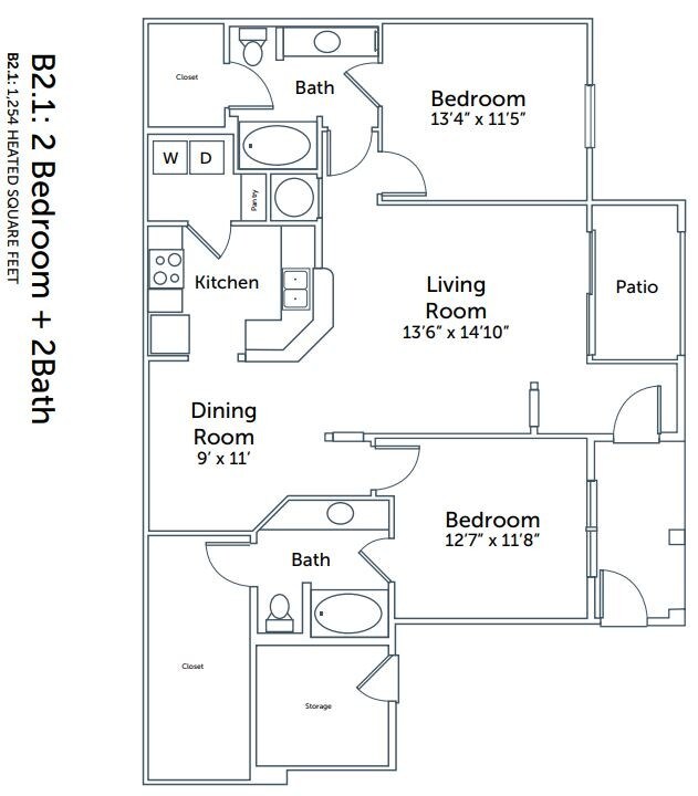 B21 - Floorplan 10 Apartment Unit: 01004Apartment Model: B212 Bedroom, 2 Bath, 1254 sq ftAvailable January 19, 2026Floorplan B3