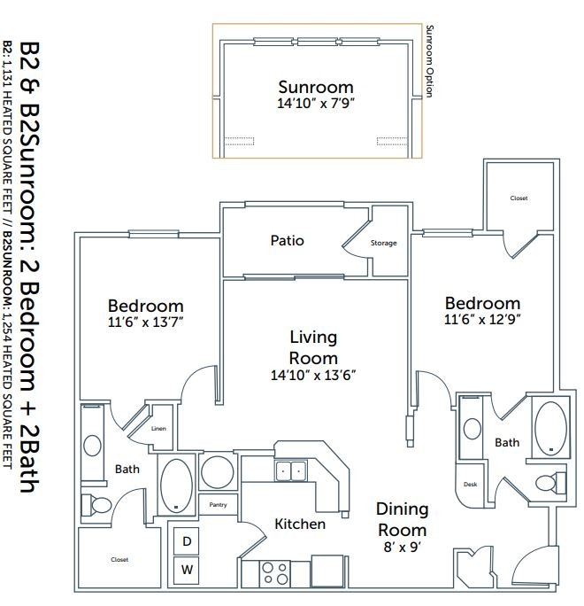 Apartment Model: B22 Bedroom, 2 Bath, 1131-1254 sq ftAvailable Now![]()